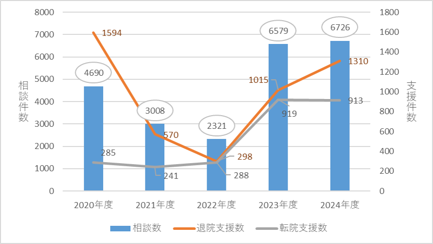 開設時から人員を増やし、2025年は看護師21名・MSW4名で相談対応を行っています。県内唯一の特定機能病院・がん診療連携拠点病院として、入院前から退院後まで「その人らしい」暮らしを途切れさせないために、医療・介護サービスの切れ目ない情報収集と把握・情報提供と伝達・連携等に力を注いでいます。がん相談においては、AYA世代にあるがん患者支援をはじめゲノム医療、希少がん、小児がん等にも対応しています。特に働く世代のがん患者の「就労支援」は実績を重ねています。遺伝看護専門看護師が配属となり、遺伝性疾患に関わる意思決定支援や療養生活支援にも精力的に取り組んでいます。また当院が難病診療拠点病院となったことを受け、難病コーディネーターも配置されています。昨年からは脳卒中相談窓口が設置となり、急性期医療機関から直接自宅退院する患者とその家族や、回復期や維持期・生活期の医療機関に転院する患者とその家族に対する情報提供・相談支援を行っております。今後も、院内外問わず、関係機関や部署と協力しながら患者サービス向上に努め、支援してまいります。