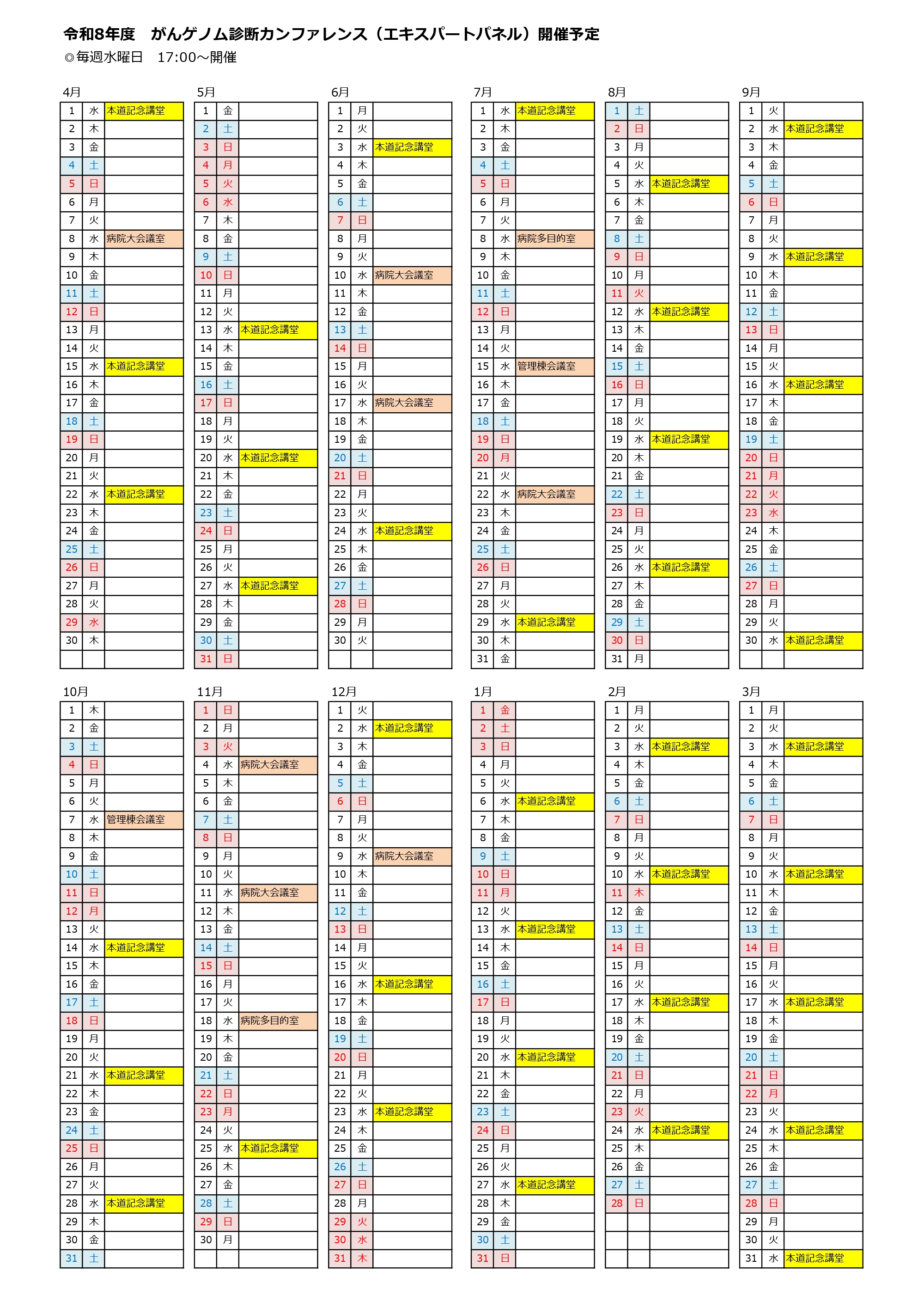 | 3 | NCCオンコパネル | 1 | 1 | 1 | 1 | 1 | 2 | 7 | |||||||
