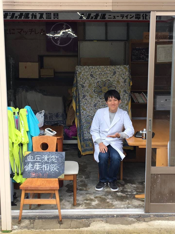 漆畑宗介先生が五城目朝市での血圧測定や健康相談、各地区のカフェ部会・サロンへの参加、老人会での講話、多職種連携会議や勉強会にも参加し、湖東分室活動をしています。