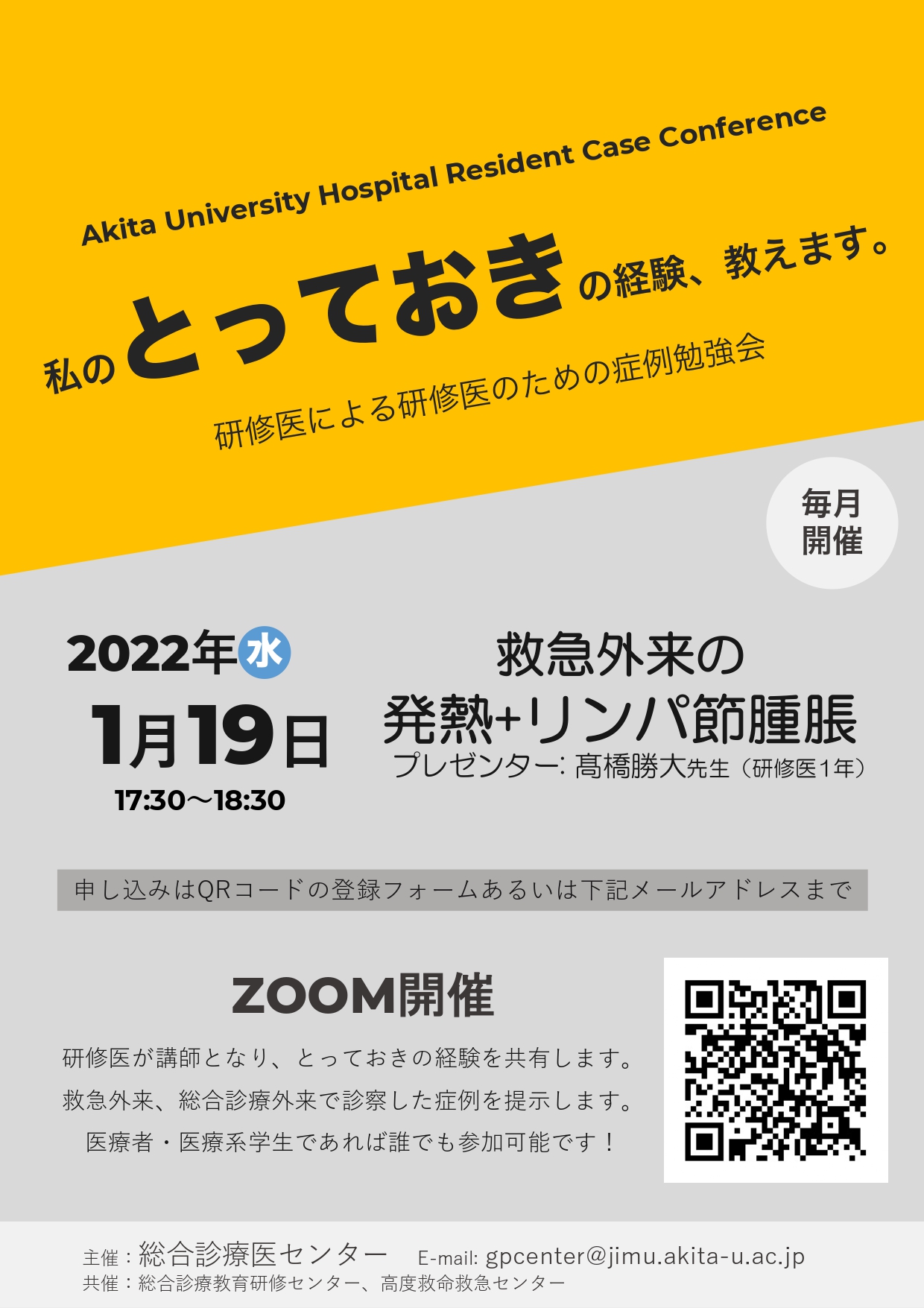 第8回テーマは「救急外来の発熱+リンパ節腫脹」、講師は髙橋勝大先生(研修医1年目)が担当しました。