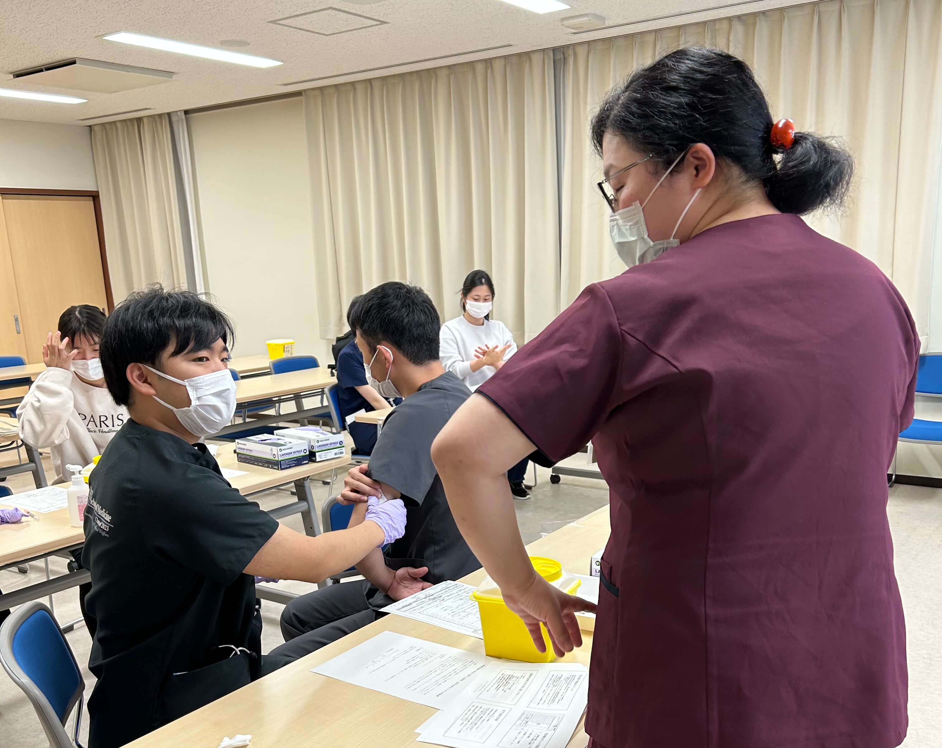 参加者からは「とても分かりやすかった」「インフルエンザワクチン接種の担当が割当られ不安だったが、今日の講習会に参加して自信がついた」「実際に手技を体験できたことが良かった」などとても好評でした。