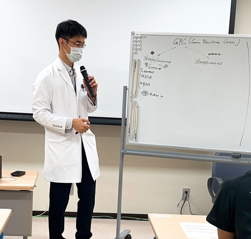 とっておきカンファレンス特別編:「感染症について」を開催しました。 HOME とっておきカンファレンス特別編:「感染症について」を開催しました。 2023.11.15 10月のとっておきカンファレンスは特別編として「感染症について」長谷川 諒先生(感染制御部)からご講演いただきました。 感染症・抗菌薬についてはアンケートでもよく取り上げて欲しい内容として希望が多いテーマです。 今回は「グラム陽性球菌」「グラム陰性桿菌」「ペニシリン系」「セフェム系」についてご講演いただきました。 現地参加できなかった方からオンラインで開催して欲しいなどの声も聞かれ、パート2を希望する声も多く好評でした。来年度のパート2開催をぜひご期待ください。