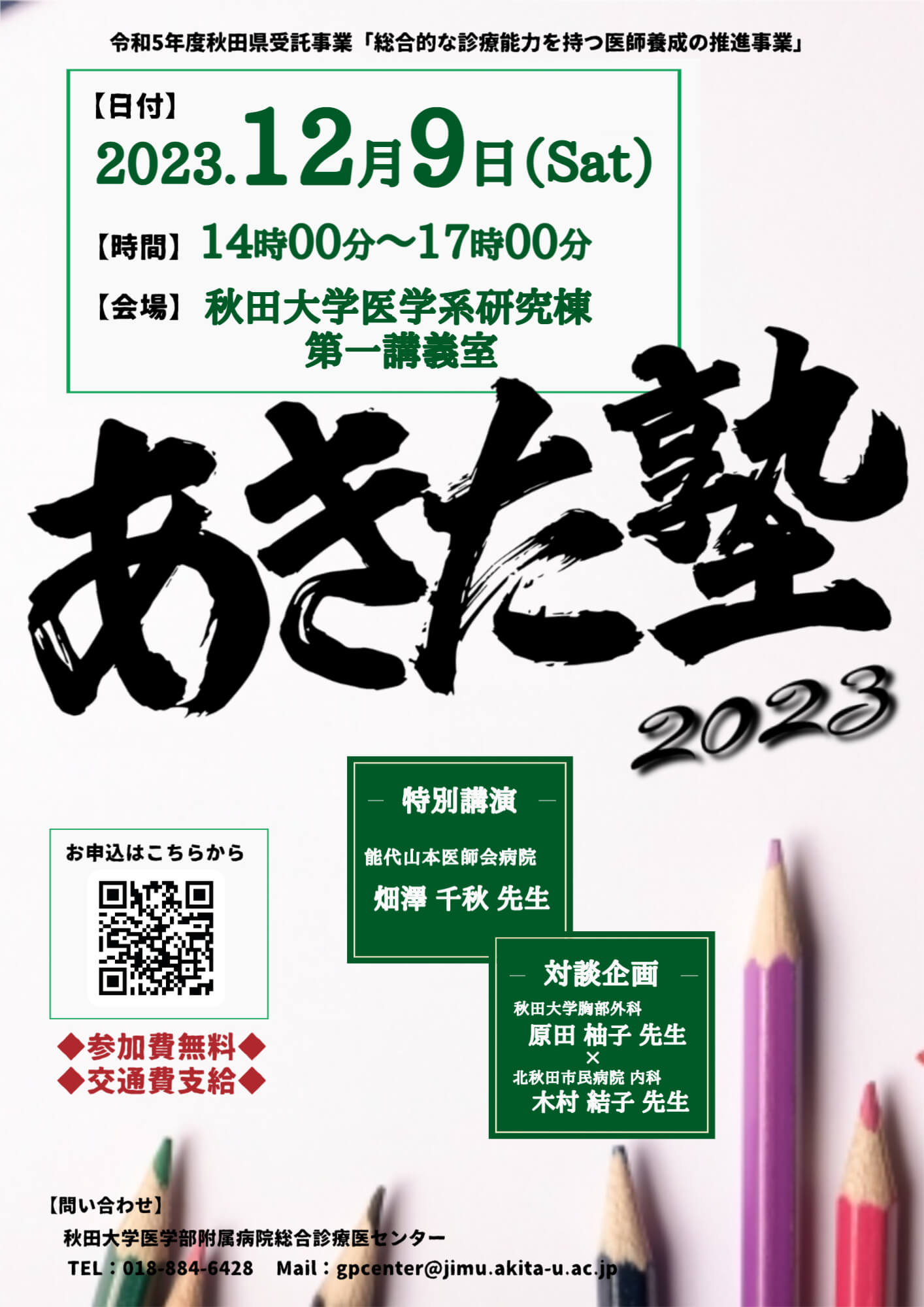 今年も秋田県からの委託を受けて、自治医科大学・東北医科薬科大学・岩手医科大学・秋田大学の学生を対象にしたシンポジウム「あきた塾2023」を開催しました。当日は各大学から28名が参加してくれました。