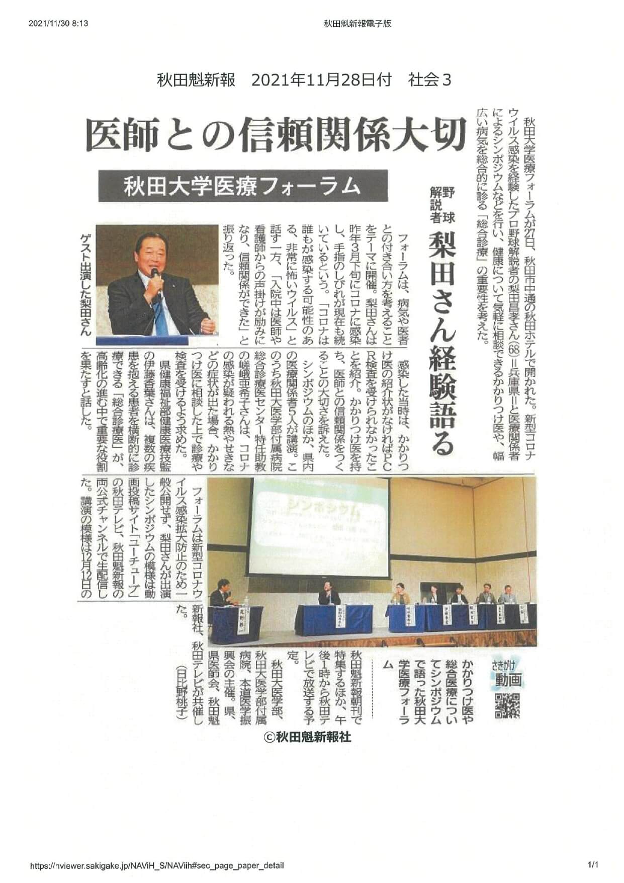 秋田大学医療フォーラムの企画特集記事が秋田魁新報に掲載されました。 HOME 秋田大学医療フォーラムの企画特集記事が秋田魁新報に掲載されました。 ①2021年11月28日付の秋田魁新報朝刊に掲載されました。 ②2021年12月12日付の秋田魁新報朝刊に掲載されました。