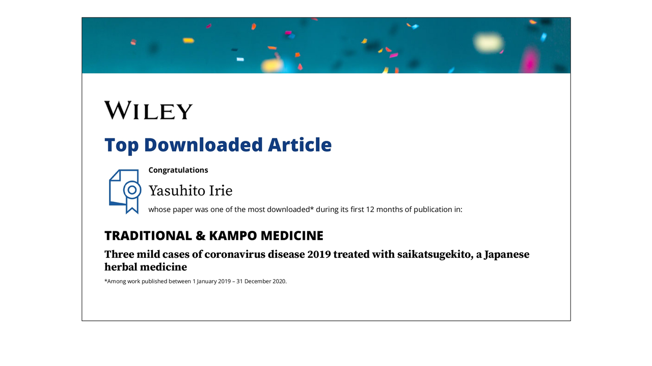 論文タイトル:Three mild cases of coronavirus disease 2019 treated with saikatsugekito, a Japanese herbalmedicine