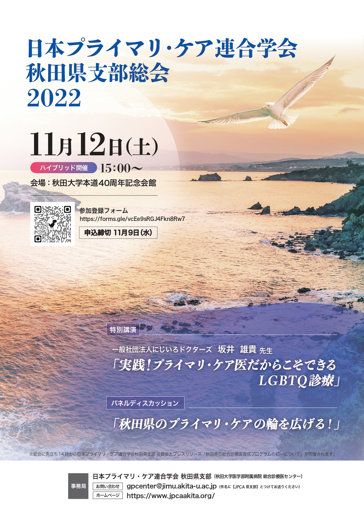 ※詳しくは日本プライマリ・ケア連合学会 秋田県支部 | 家庭医療 | 総合診療 (jpcaakita.org)より事前申込をお願いいたします。