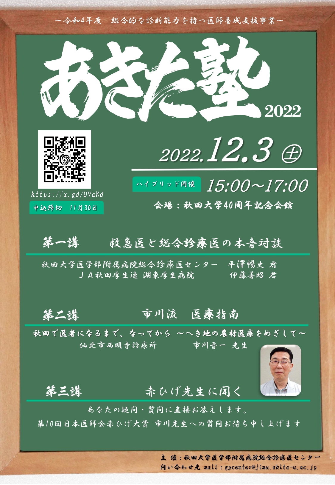 秋田県と連携し、医療者・医療系学生向けのシンポジウムを開催します。