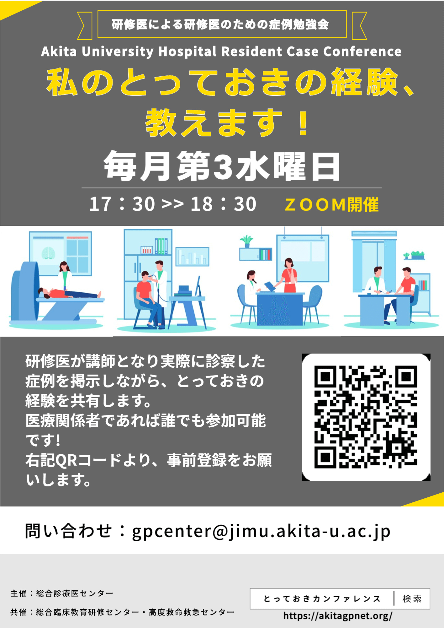 研修医が講師となり実際に経験した症例を掲示しながら、とっておきの経験を共有します。