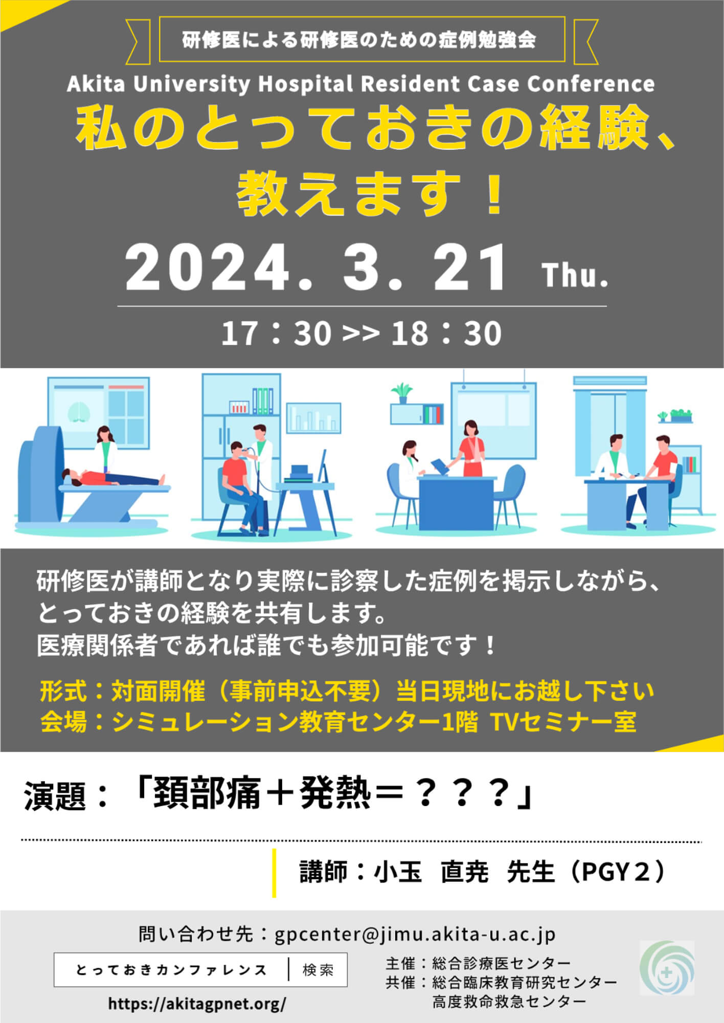 【演 目】 「頚部痛+発熱=???」(別添パンフレット参照)