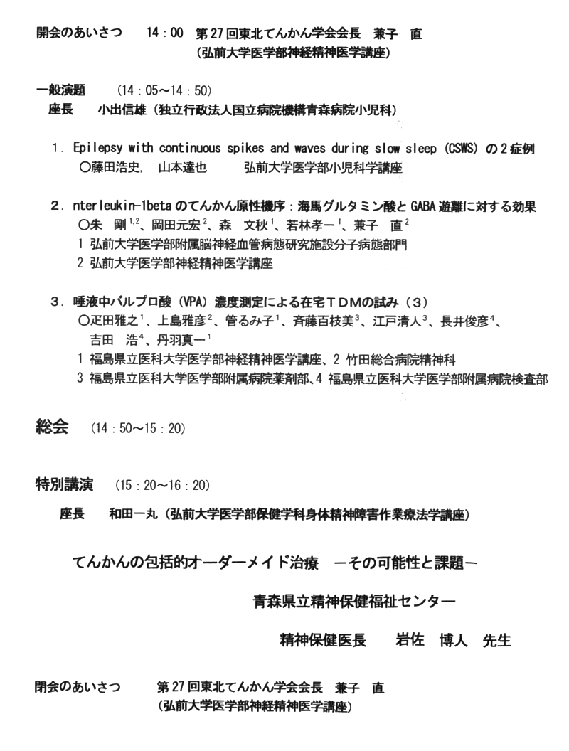 1985年9月14日 | 福島 裕 | 弘前大学医学部神経精神科 | 弘前市 | プログラム | |