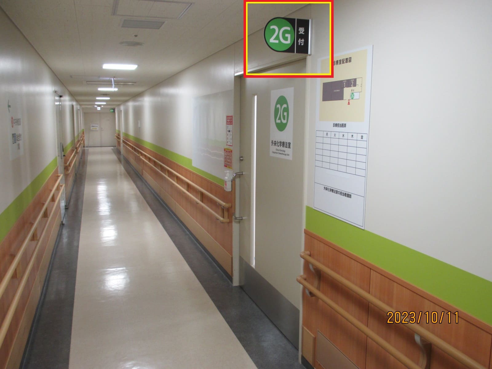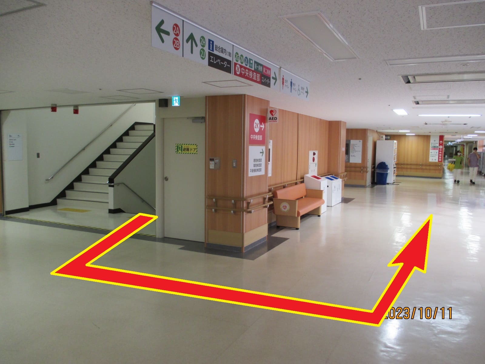 ②階段左手通路を左手に折り返し(エレベータから向かって左へ)進みます。