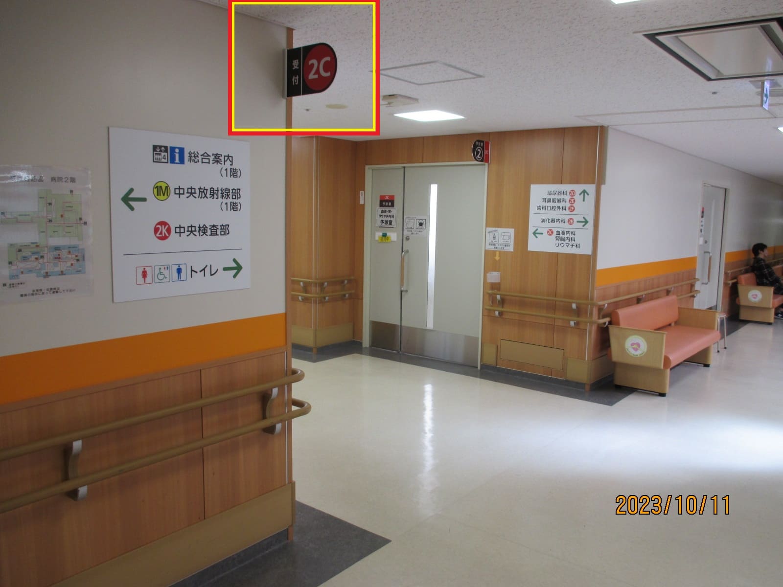 ③案内に沿って(窓を右手に臨みながら)進み、すぐ左手「2C」の看板が目印です。