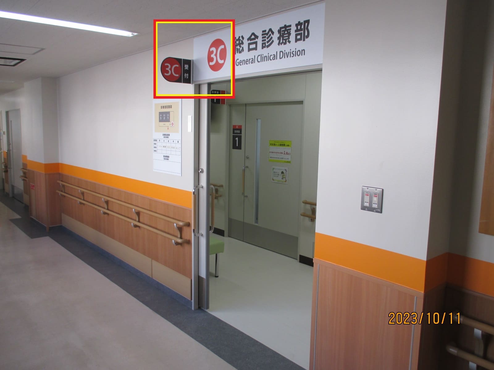 ①ホール右奥階段( または、右手回り込んで真裏エレベータ)で3階へ上がります。