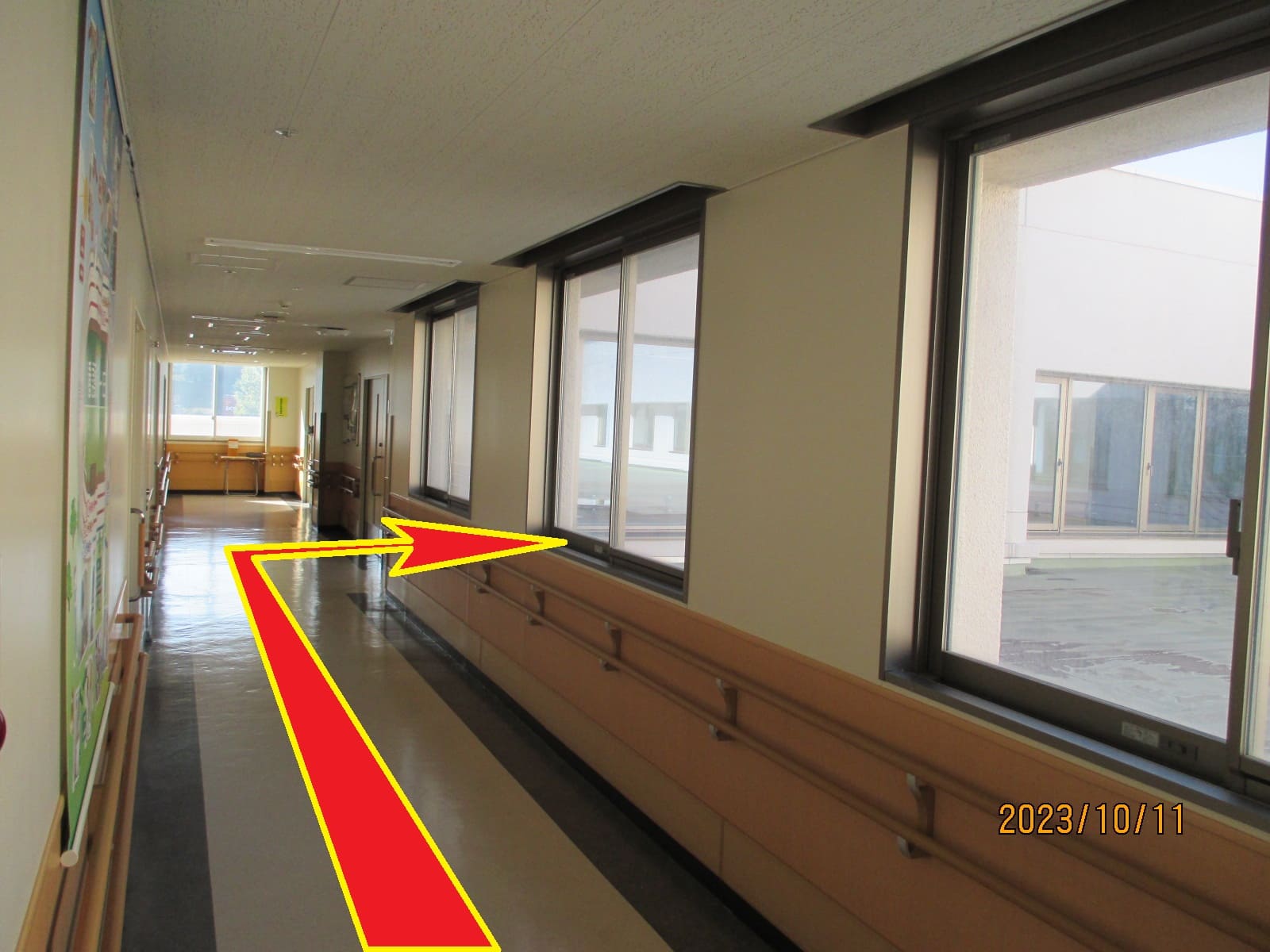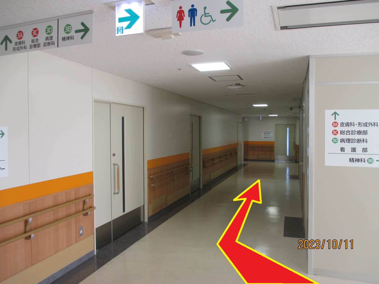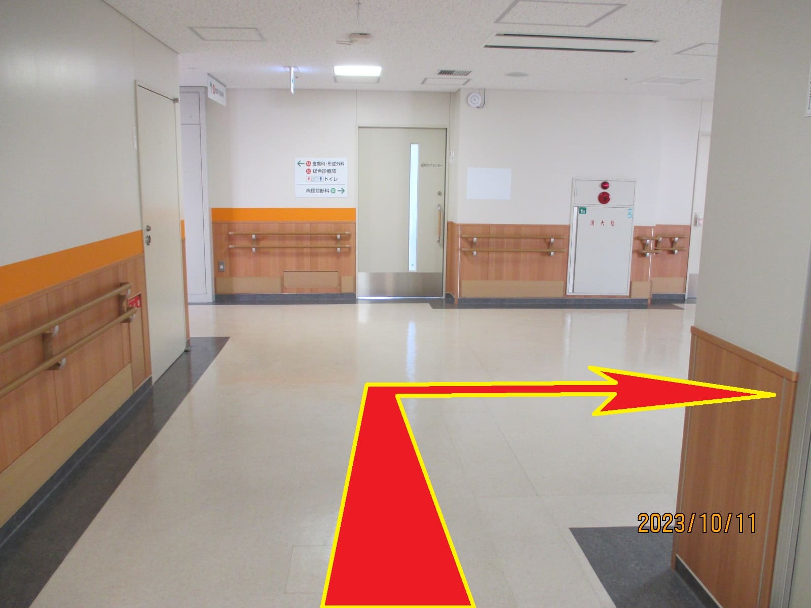 ②階段左手(エレベータ降り右手)通路を進みます。