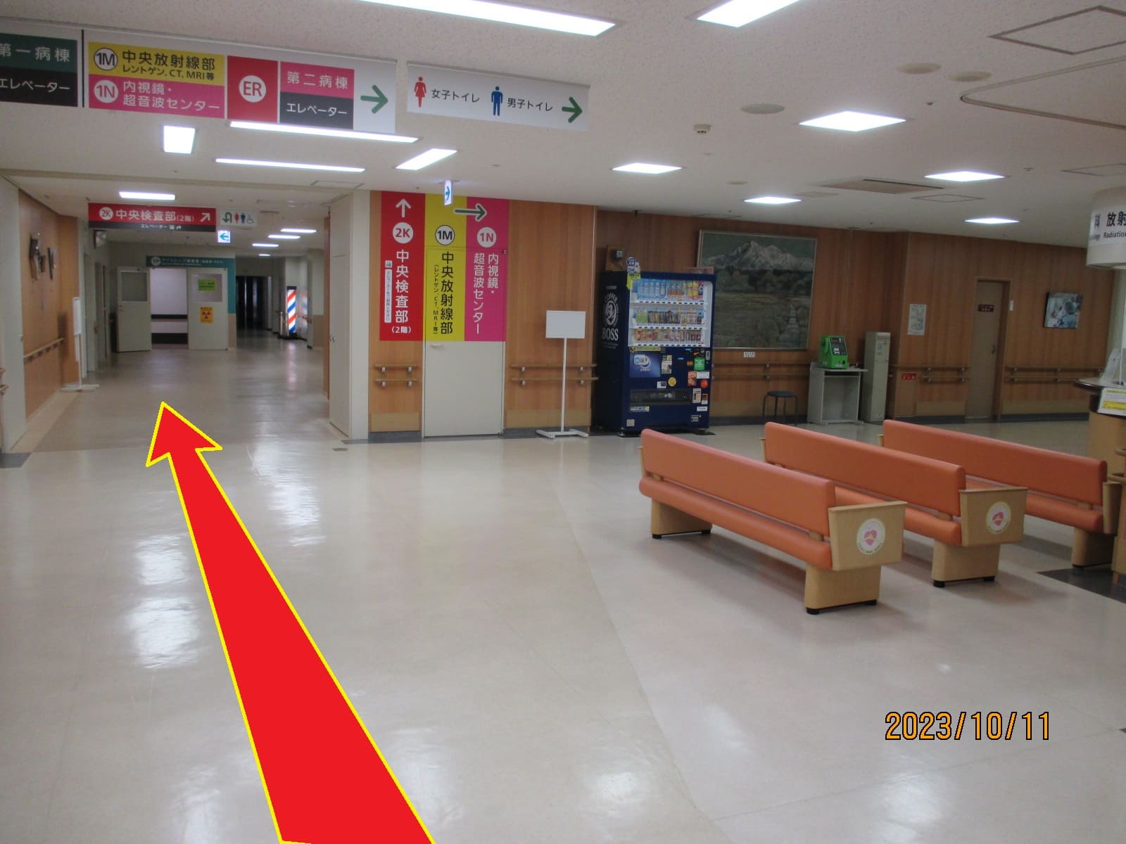 ③右T字路(第二病棟へ向かう案内見える)をそのまま直進します。